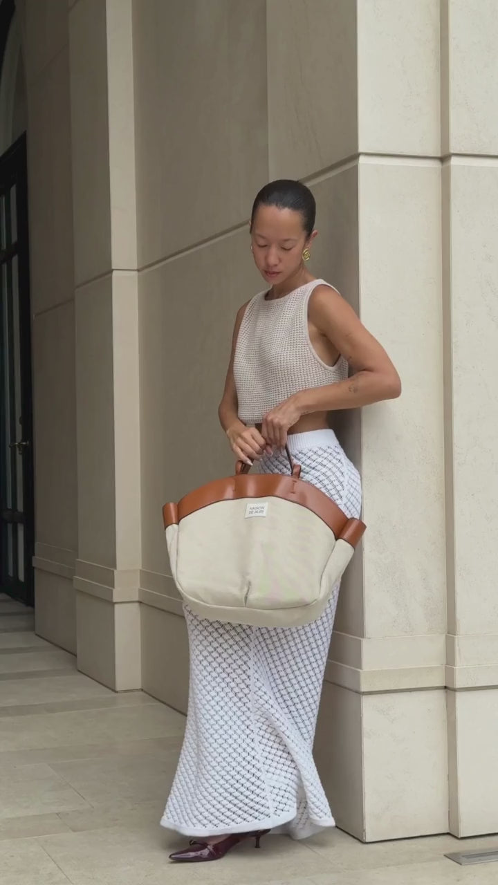 Crafted for modern city life, Maison de Auri's Milan blends natural canvas with rich leather accents for a look that’s both refined and relaxed. With dual handles for styling versatility and a spacious interior, it moves seamlessly from weekday meetings to weekend escapes.