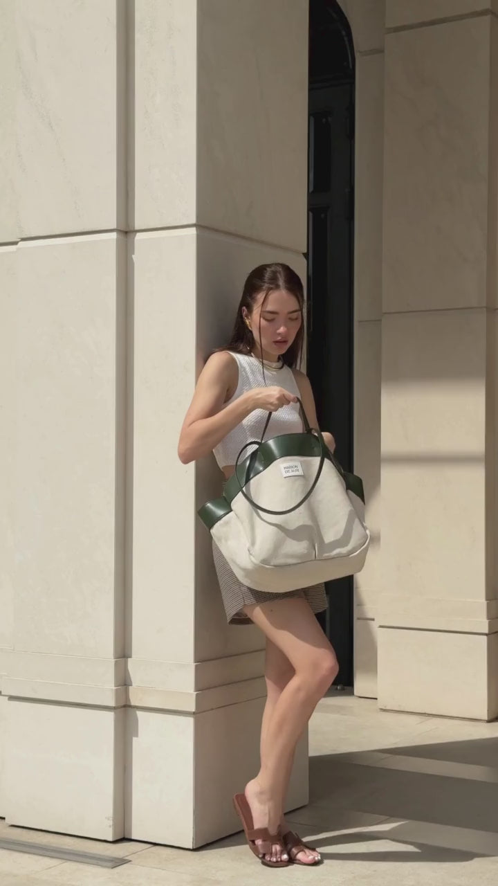 Crafted for modern city life, Maison de Auri's Milan blends natural canvas with rich leather accents for a look that’s both refined and relaxed. With dual handles for styling versatility and a spacious interior, it moves seamlessly from weekday meetings to weekend escapes.