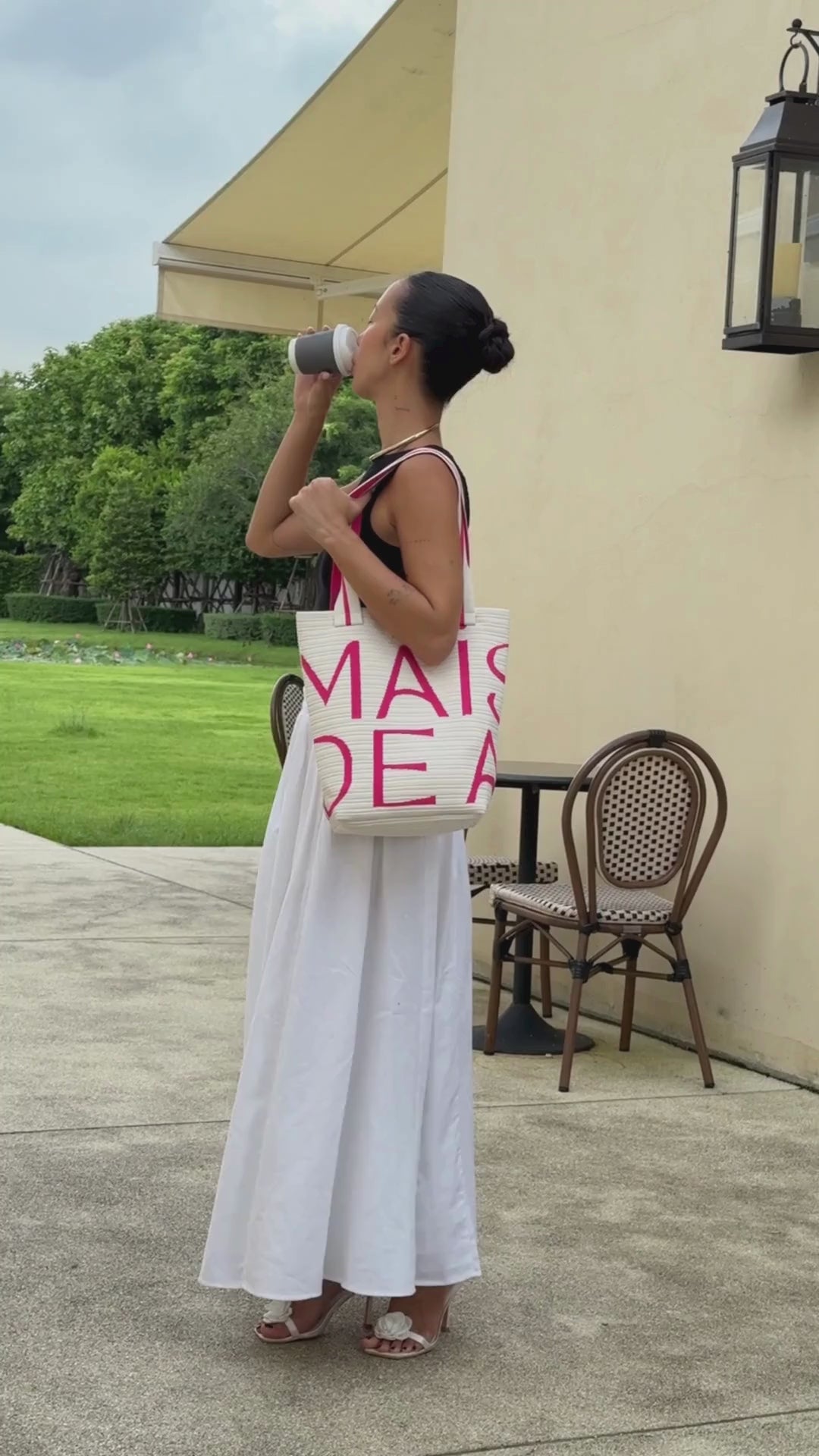 Maison de Auri’s SAC Pop is the signature item, defined by its clean silhouette and oversized lettering. Crafted in premium knit, the bag combines lightness with structure, making it an effortless companion for everyday city living.